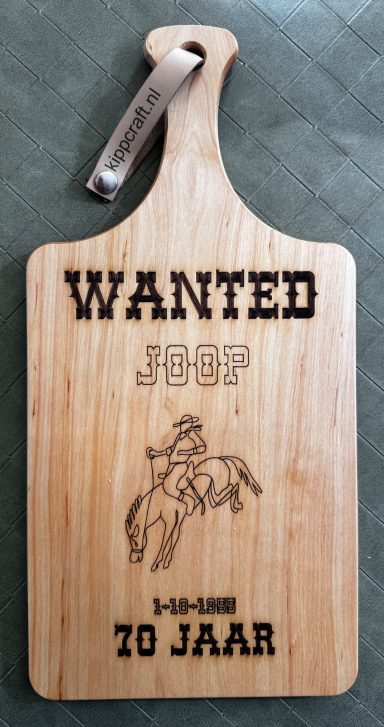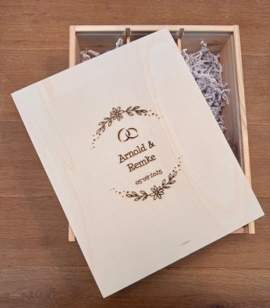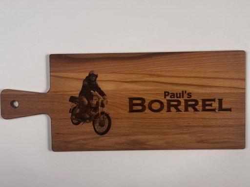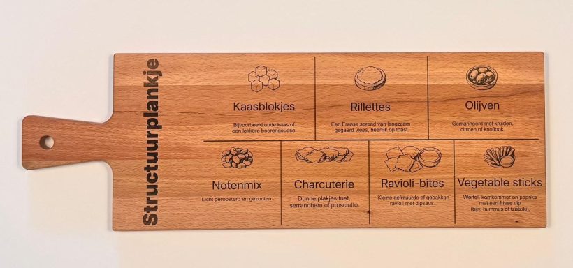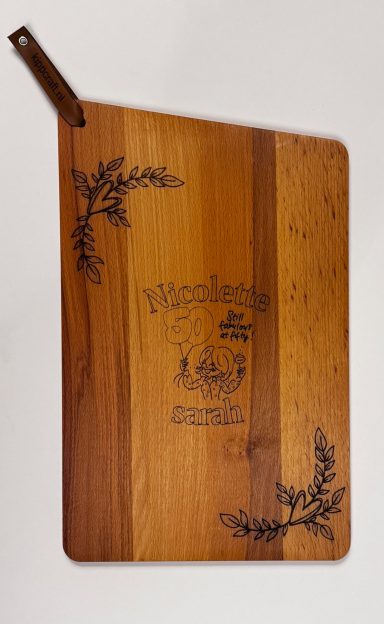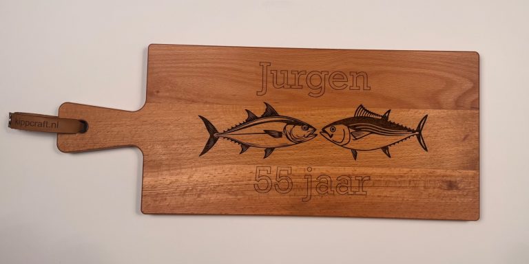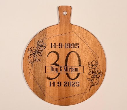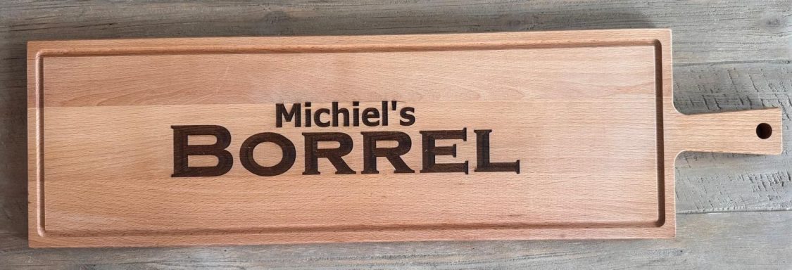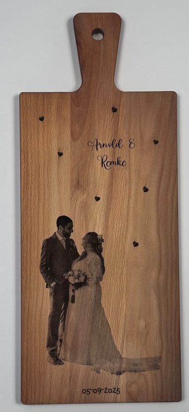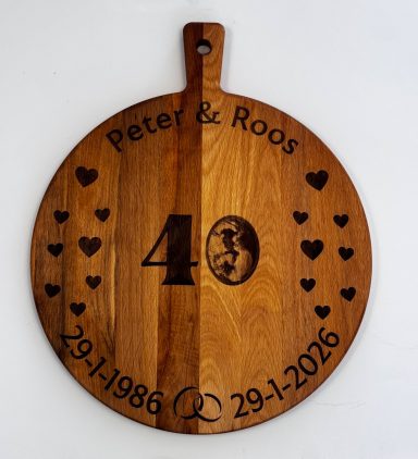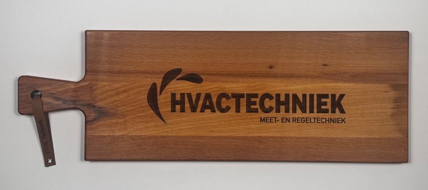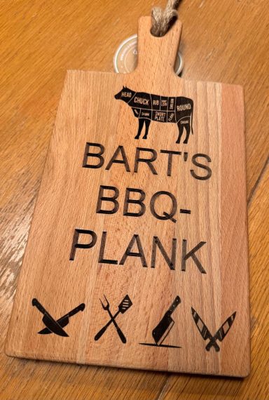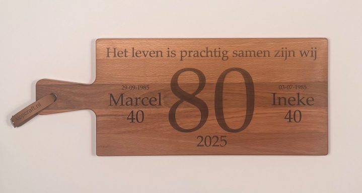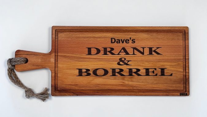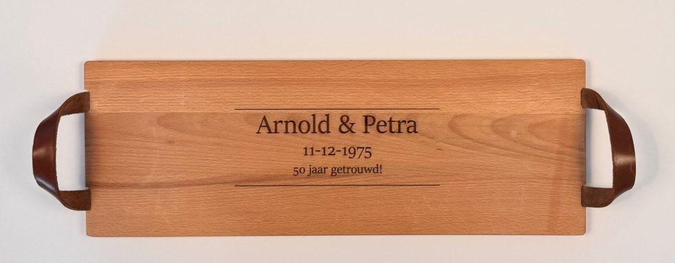 Een stijlvolle plank, gepersonaliseerd naar uw wensen – perfect als cadeau of relatiegeschenk.