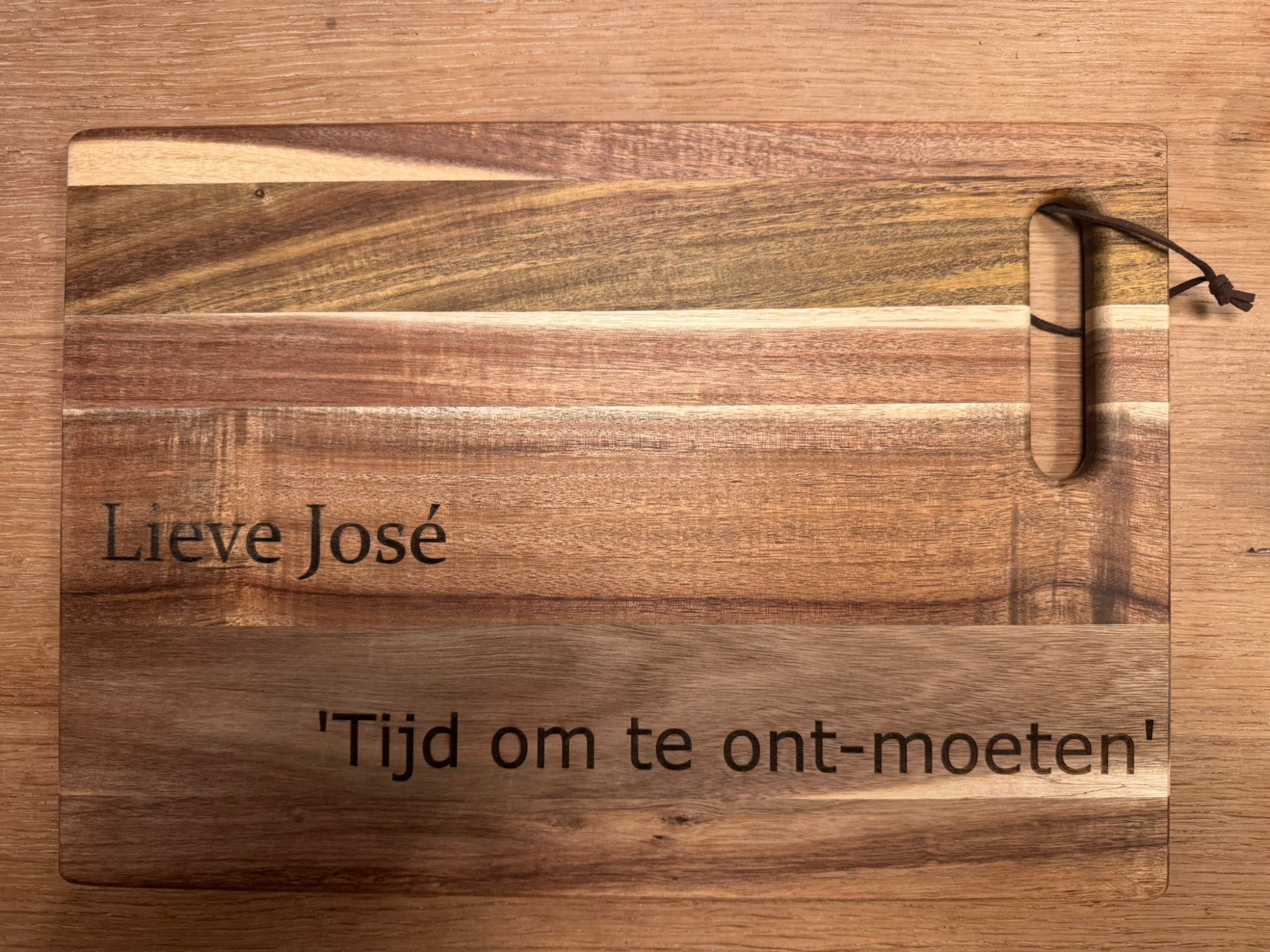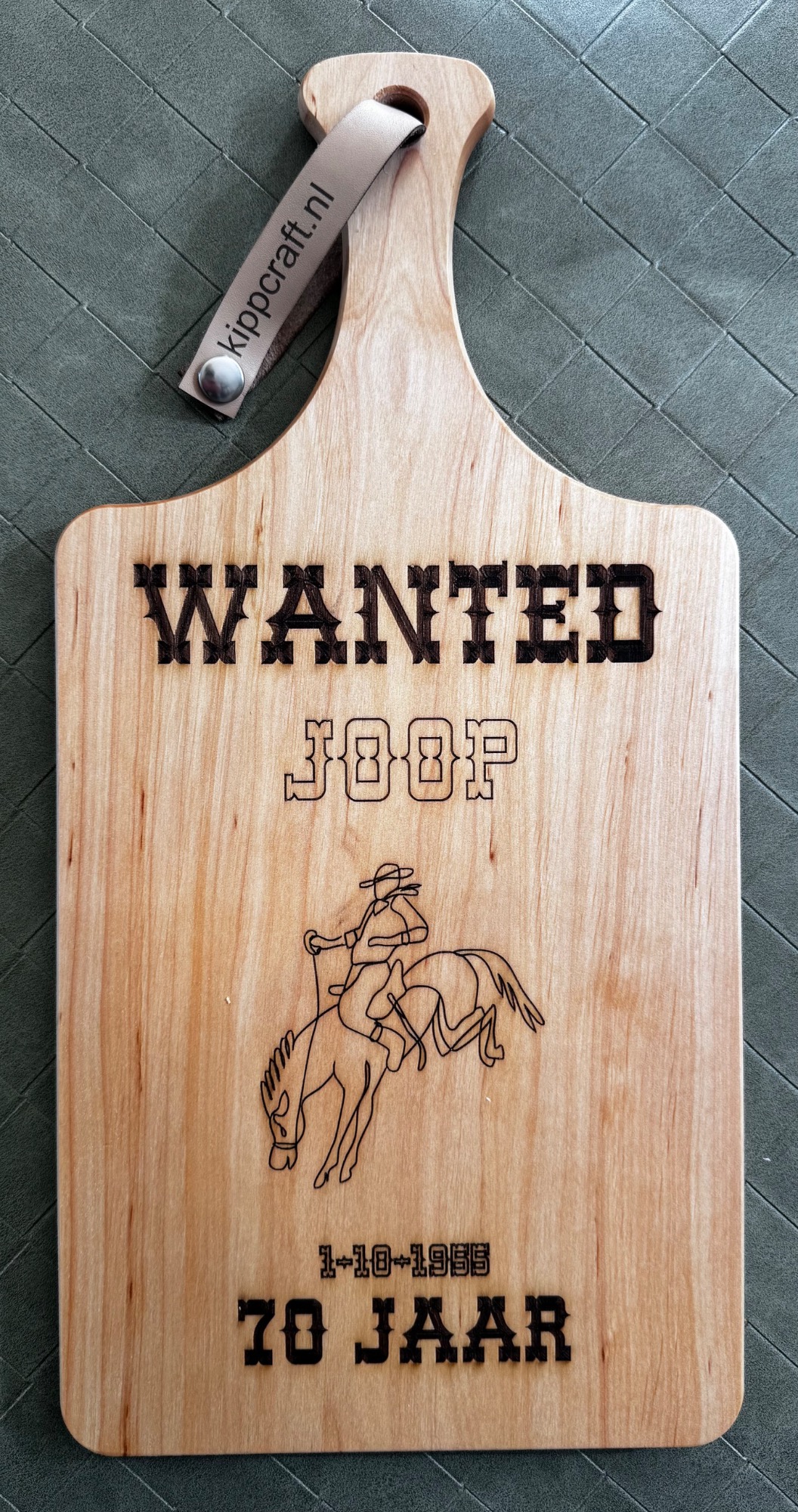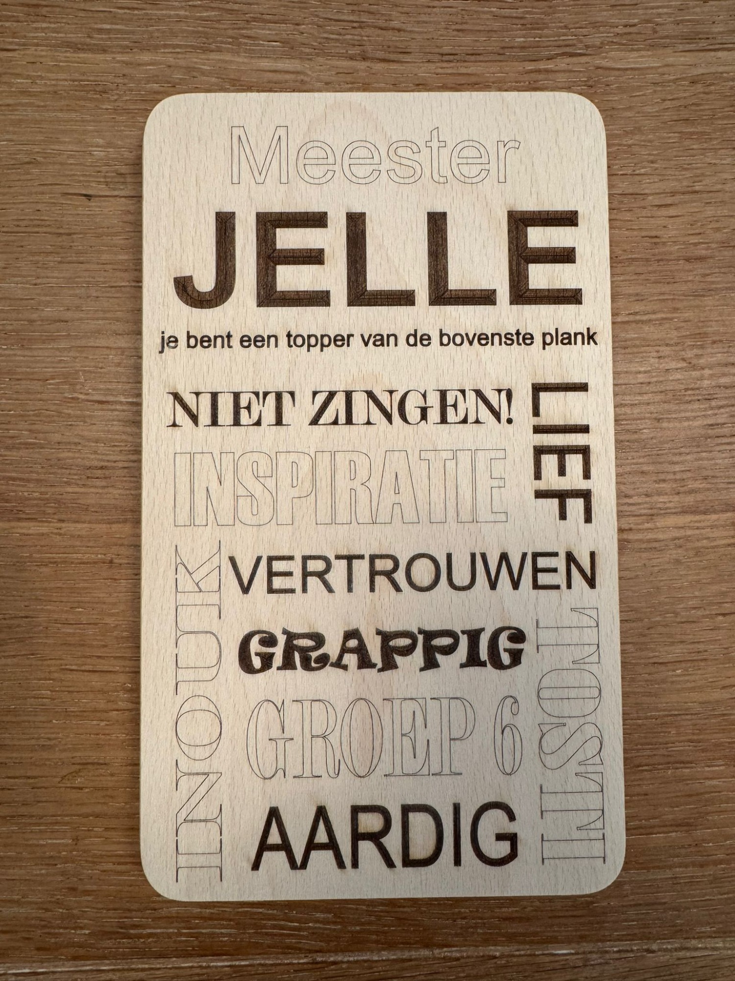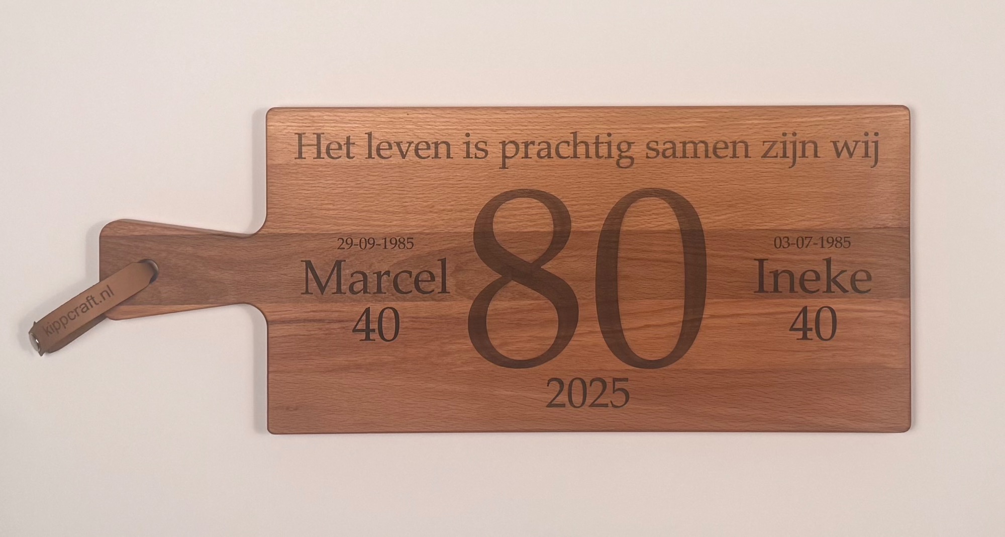 Een stijlvolle plank, gepersonaliseerd naar uw wensen – perfect als cadeau of relatiegeschenk.