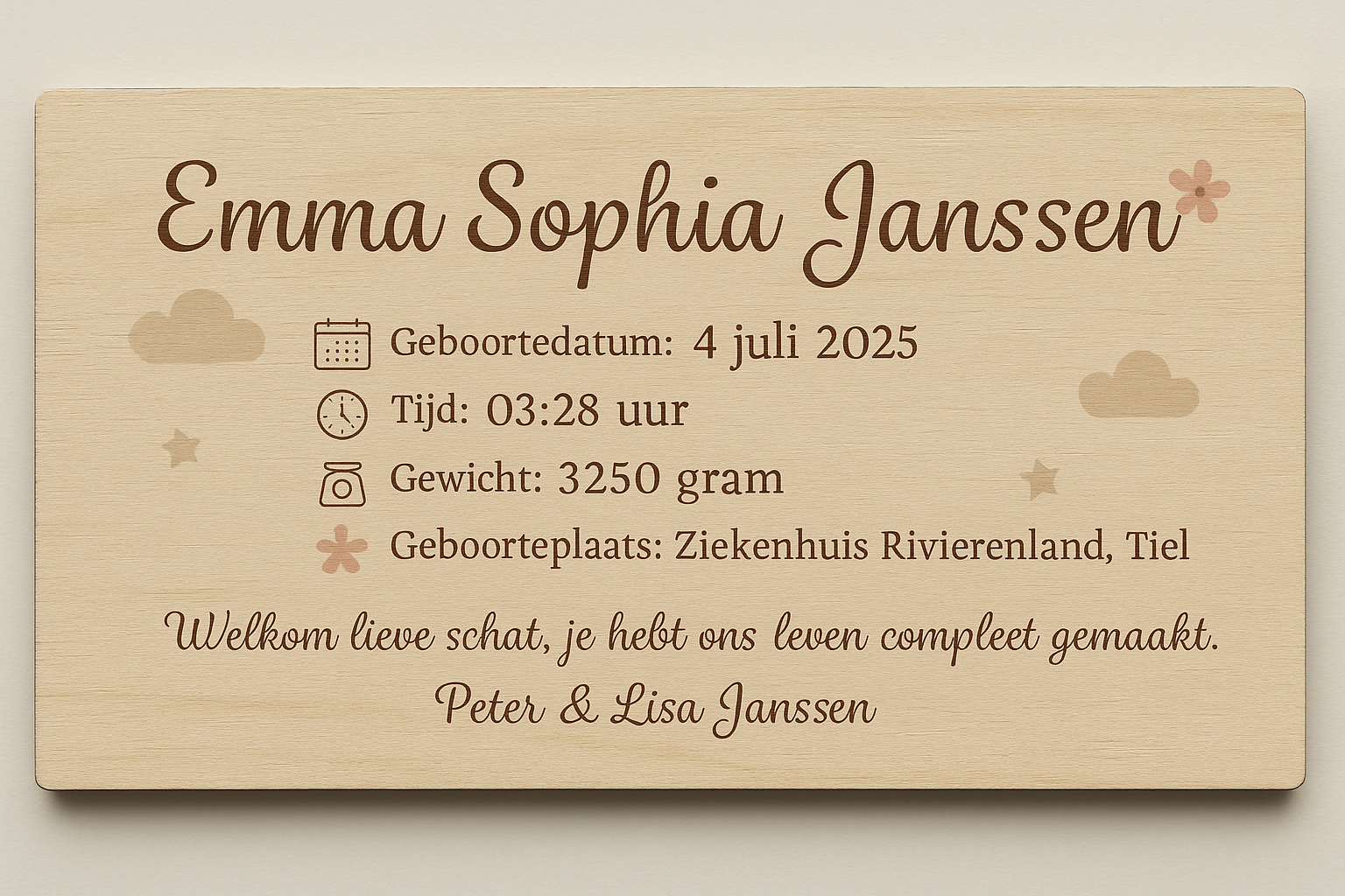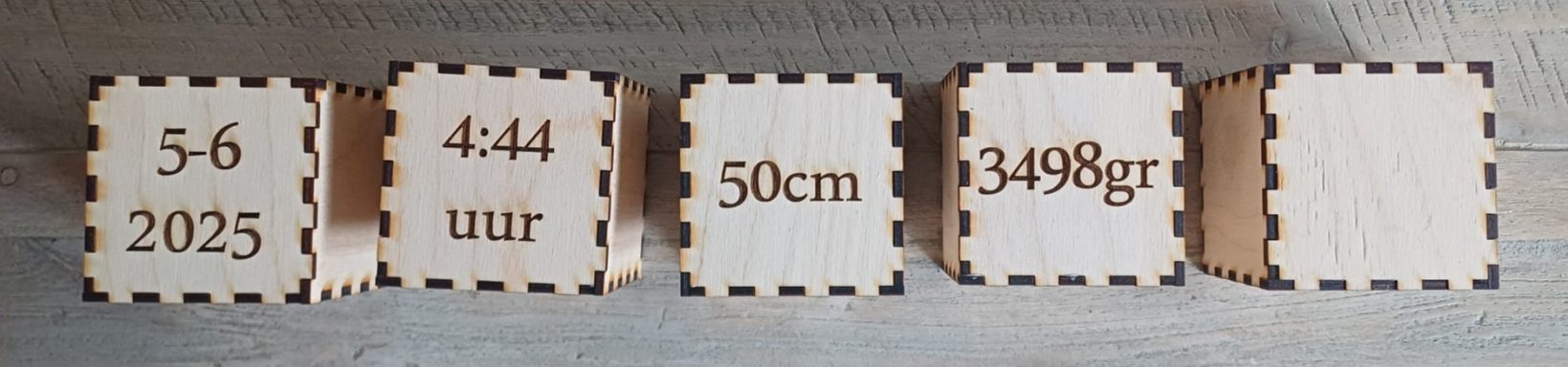 Met de geboortegegevens erop.