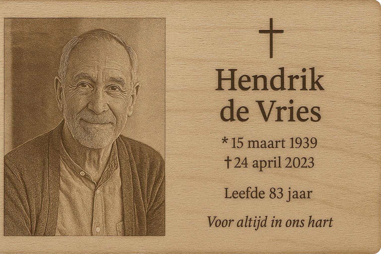 Heeft u een dierbare verloren en wilt u deze vereeuwigen op een mooie plank.